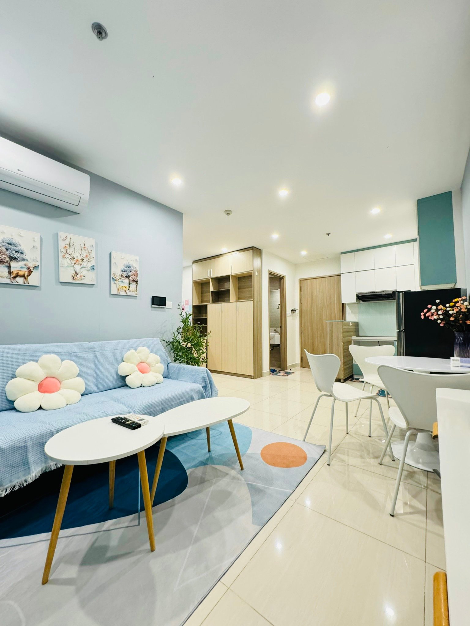 Thiết kế thông minh, tối ưu không gian: Căn hộ 1 phòng ngủ tại S5.03 được thiết kế theo phong cách hiện đại, tận dụng tối đa diện tích sử dụng. Phòng khách và bếp được liên thông tạo không gian mở rộng rãi, thoáng đãng. Phòng ngủ riêng biệt đảm bảo sự riêng tư và yên tĩnh. Ban công rộng mở đón ánh sáng tự nhiên và gió trời, mang đến không gian sống trong lành.